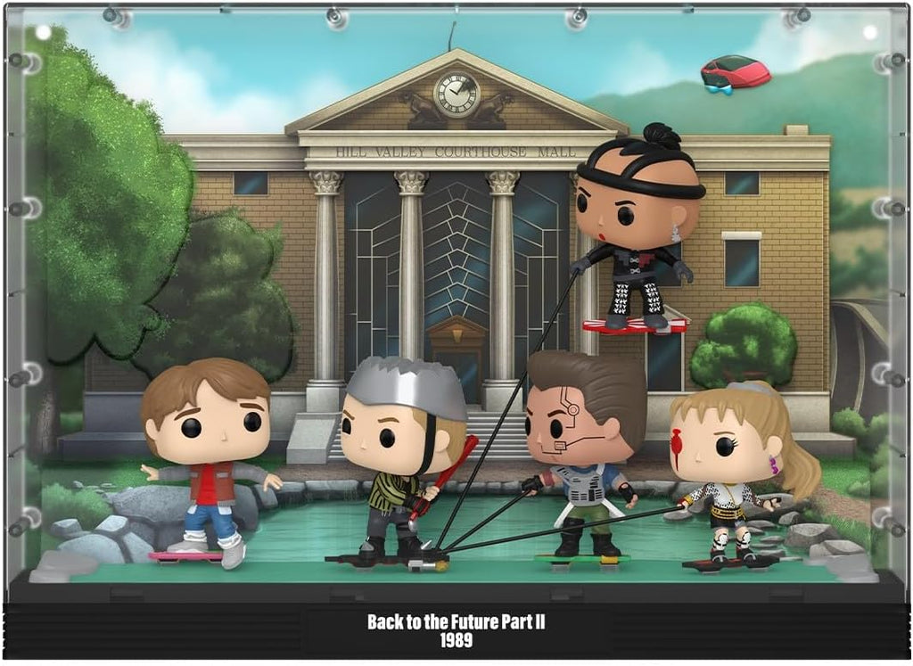 ¡Súbete a tu aeropatín y vive una aventura alocada! Ayuda a Pop! Marty McFly™ a escapar de Pop! Griff Tannen™, Pop! Data, Pop! Whitey y Pop! Spike cuando lo incorpores a tu colección futurista. Completa tu colección de Regreso al Futuro Parte II™ con este Pop! Moment Deluxe que recrea la icónica persecución en aeropatín a través del charco. Las figuras Pop! están adheridas al fondo para garantizar la integridad de la escena y facilitar su exhibición.