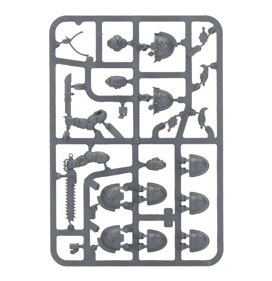 - 5 Primaris Reivers (5 miniaturas, cada una suministrada con una peana redonda Citadel de 32 mm. En su lugar, se pueden montar como Hounds of Morkai).