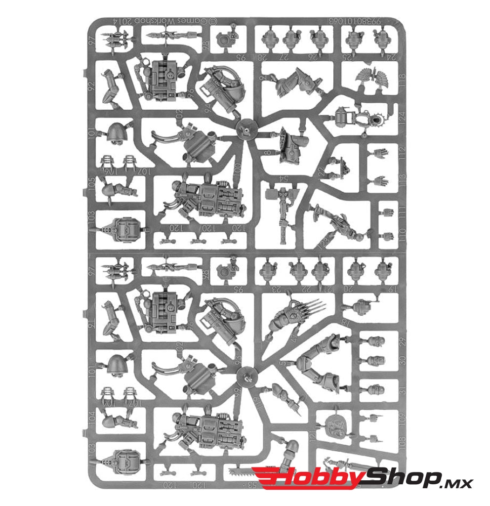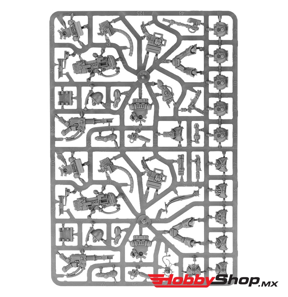 - Cinco Sellos de Pureza, dos Cráneos de Servo, una pila de proyectiles gastados, una pieza de base de cráneo, diez cascos de puntería de Marines Espaciales, seis juegos de piernas, seis manos de Sargento y ocho hombreras de Marines Espaciales completan esta inmensa colección de componentes.