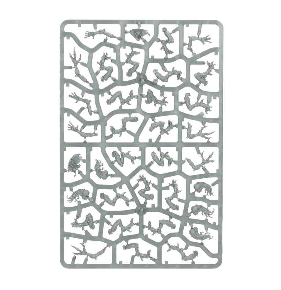 Este kit de plástico multicomponente permite montar 10 Genestealers, rápidos y letales asesinos cuerpo a cuerpo para ejércitos Tiránidos y Cultos Genestealers. Estas aterradoras criaturas de cuatro brazos lucen garras agarradoras junto con mortíferas garras desgarradoras, y cada una presenta una pose dinámica diferente para acechar por el campo de batalla. El kit incluye opciones de cabezas cosméticas para cada Genestealer, lo que te permite construir tu prole completa con fauces con colmillos y lenguas babeantes, zarcillos de alimentación para el clásico aspecto de Ymgarl, o combinarlas para una mayor variedad evolutiva. También encontrarás cuatro cabezas con ovipositores salientes y con púas, listas para dar el infame Beso del Genestealer...
