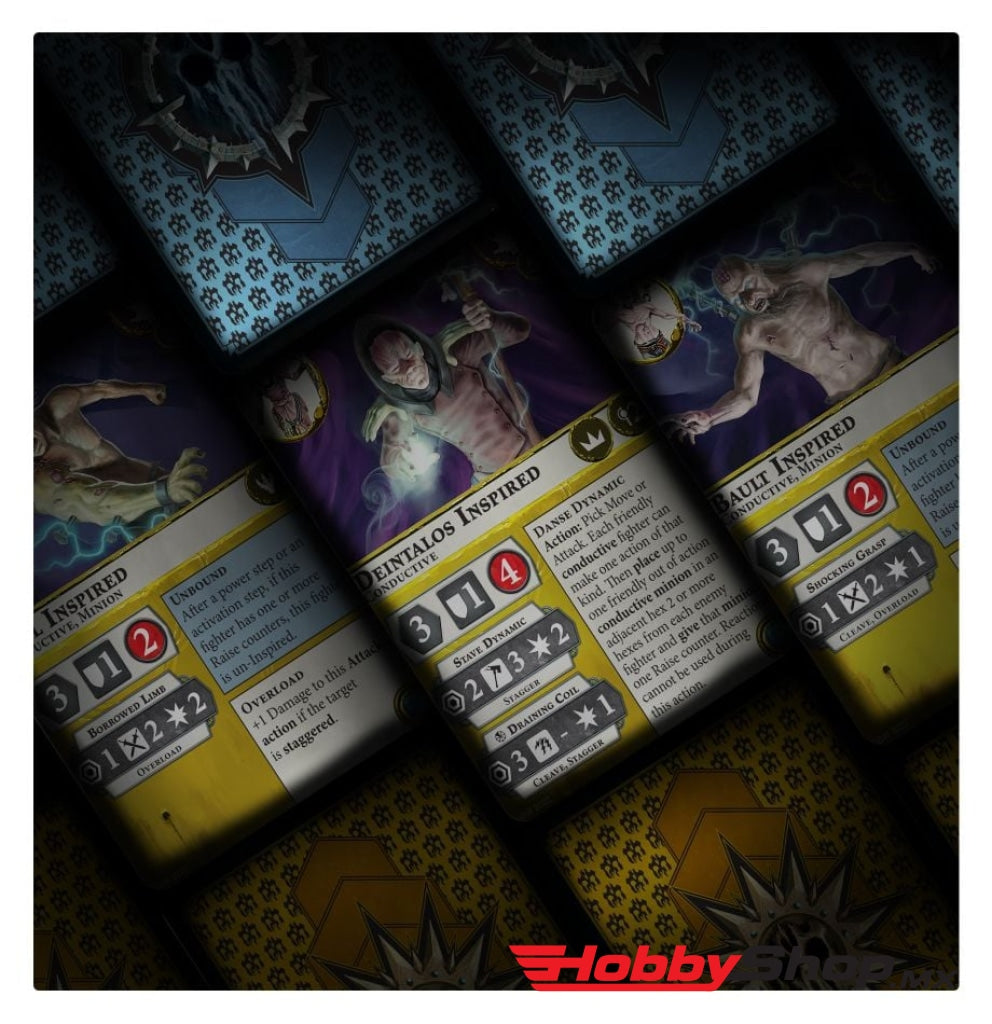 - 65x cartas para mejorar a tus luchadores y ofrecer nuevas tácticas y desafíos para tus partidas de Warhammer Underworlds: Harrowdeep, que incluyen: