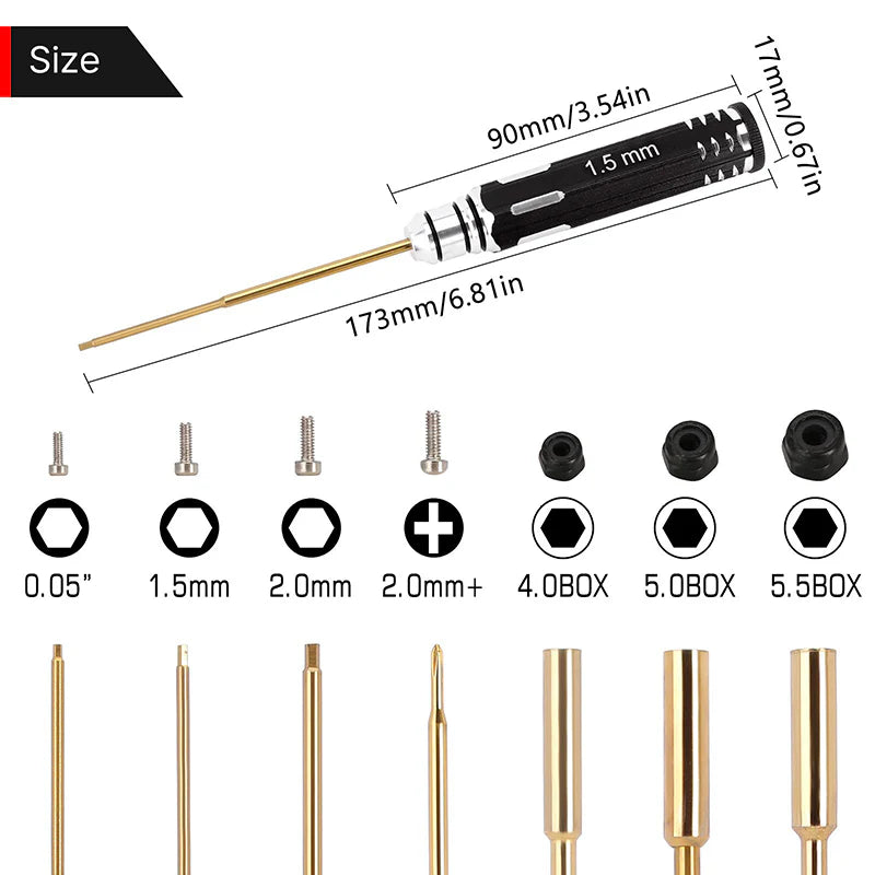 - 1 destornillador hexagonal de 0,05" mm