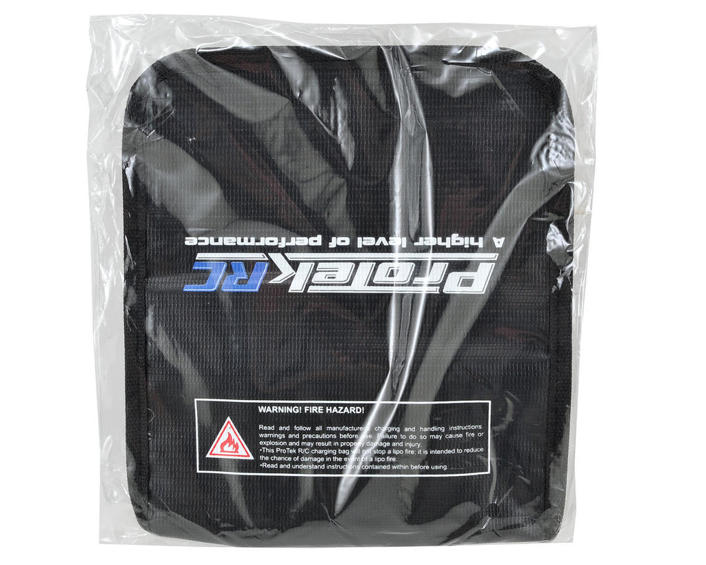- Esta bolsa de carga de litio ProTek para radiocontrol está diseñada para reducir el riesgo de daños en caso de incendio de una batería de LiPo.