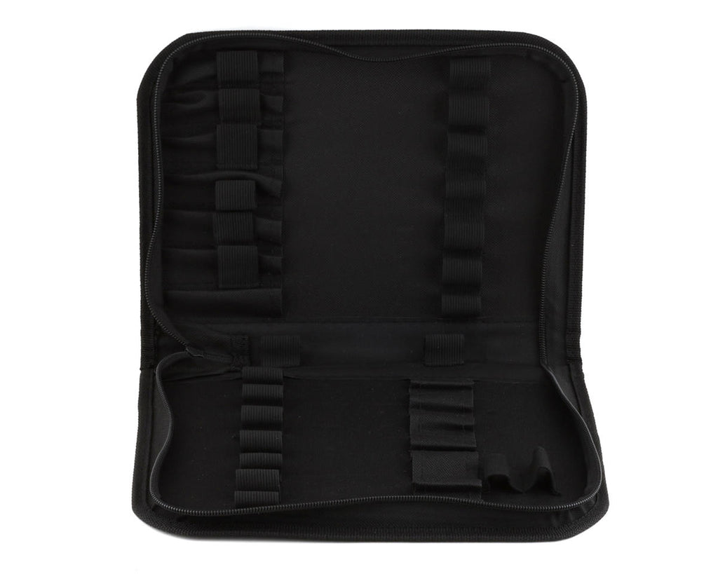 Diseñada pensando en la simplicidad y la funcionalidad, la bolsa de herramientas ProTek R/C "TruTorque" Team es una bolsa de alta calidad fabricada con material duradero y tiene el tamaño perfecto para llevar la mayoría de las herramientas que necesitarás para un día en la pista o el campo de vuelo. La bolsa cuenta con dos compartimentos; Una de las partes cuenta con ocho ranuras verticales para herramientas de hasta 20cm de largo, junto con dos ranuras horizontales para herramientas de hasta 16.5cm. El lado opuesto tiene siete compartimentos con bolsillos para herramientas de hasta 25cm de largo. Todas las ranuras incluyen correas de compresión elásticas que sujetan firmemente herramientas con mangos de hasta 25mm de diámetro durante el transporte. Además, este lado de la bolsa también cuenta con seis correas de compresión más pequeñas entre los bolsillos, así como un soporte integrado en el ribete central, ¡lo que proporciona aún más capacidad de almacenamiento!