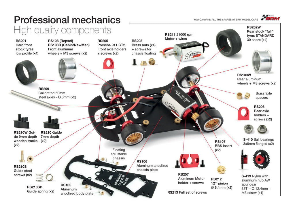 Coche de slot a escala 1/32 con mecánica profesional y componentes de alta calidad por BRM.