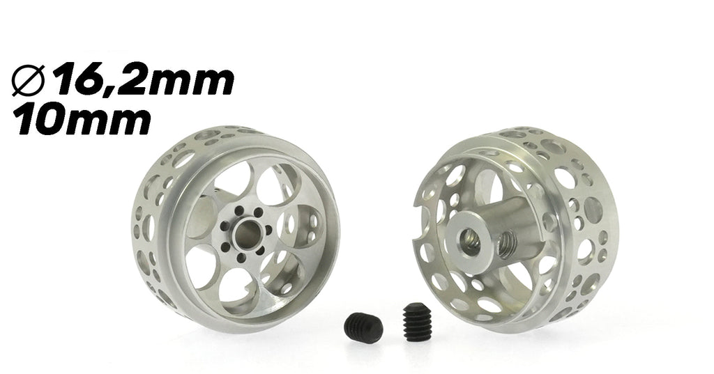 Llanta Aluminio 16,2x10mm. Monza-2 para Ejes 2,38mm. Tornillo M2,5. Peso 0,9gr.