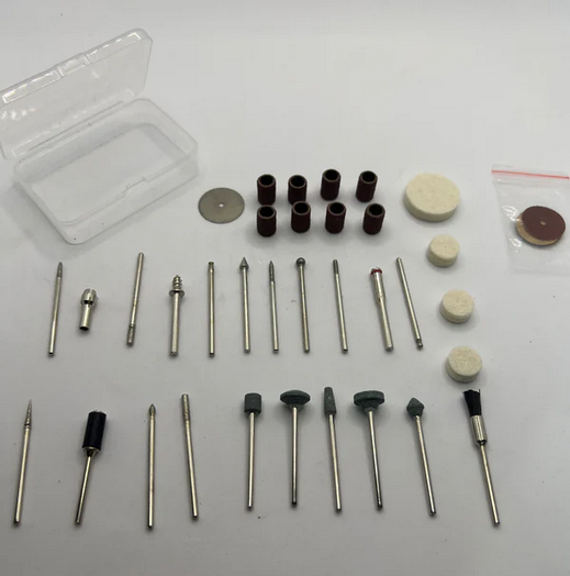 - Kit de accesorios de inicio con discos de corte, piedras de amolar y brocas de pulido