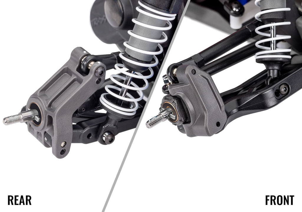 El Buggy Eléctrico Traxxas Bandit HD 1/10 RTR 2WD cuenta con componentes de suspensión Extreme Heavy-Duty instalados de fábrica. Incluye bujes C reforzados, soportes de eje y bloques de dirección moldeados con material compuesto de alta resistencia, lo que garantiza que el buggy resista las duras condiciones todoterreno y las condiciones de conducción más exigentes.