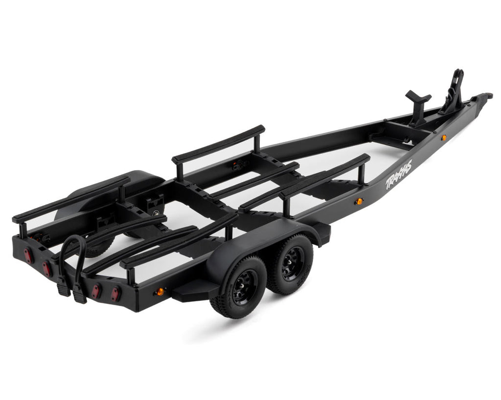 El remolque para barco Traxxas Disruptor de eje tándem es una réplica a escala totalmente detallada, diseñada para transportar su Traxxas Disruptor al lago con estilo. Con una estructura ligera de aluminio y amarres elásticos, este remolque sujeta firmemente su barco durante el transporte, a la vez que mantiene una durabilidad excepcional y facilidad de uso.