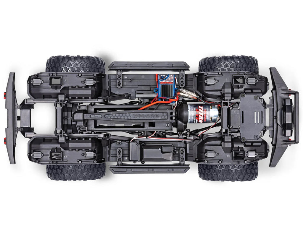 La Traxxas TRX-4 Sport está impulsada por un sistema electrónico avanzado y confiable que mejora su rendimiento y versatilidad. En su núcleo se encuentra el motor Titan 21T 550, que ofrece una gran potencia y está equipado con un ventilador interno para evitar el sobrecalentamiento durante el uso prolongado. El control electrónico de velocidad (ESC) XL-5™ HV es totalmente impermeable y ofrece cinco perfiles de conducción diferentes: modo deportivo, modo carrera, modo entrenamiento, modo trail y modo crawl, cada uno adaptado a las condiciones y preferencias de conducción. El sistema de radio TQ proporciona un control preciso, mientras que el servo digital 2075X con engranaje metálico montado en el chasis ofrece una capacidad de dirección superior con un impresionante ángulo de giro de 45 grados. Además, la caja del receptor hermética patentada, sellada con junta tórica, mantiene el microrreceptor seco, garantizando un rendimiento fiable en condiciones de humedad. Juntos, estos componentes electrónicos convierten al TRX-4 Sport en una máquina potente, capaz de afrontar cualquier sendero u obstáculo con confianza y precisión.