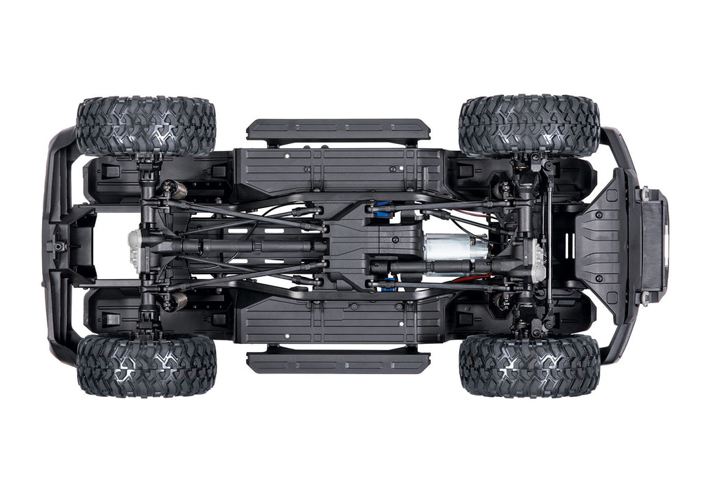 - Capacidad TRX-4: Las características que hacen de TRX-4 un favorito galardonado están integradas en la Bronco. Eso incluye ejes de portal de alto espacio libre, diferenciales T-Lock operados a distancia, transmisión de 2 velocidades alta / baja, amortiguadores GTS de aluminio, marco de escalera de acero, ¡y más!