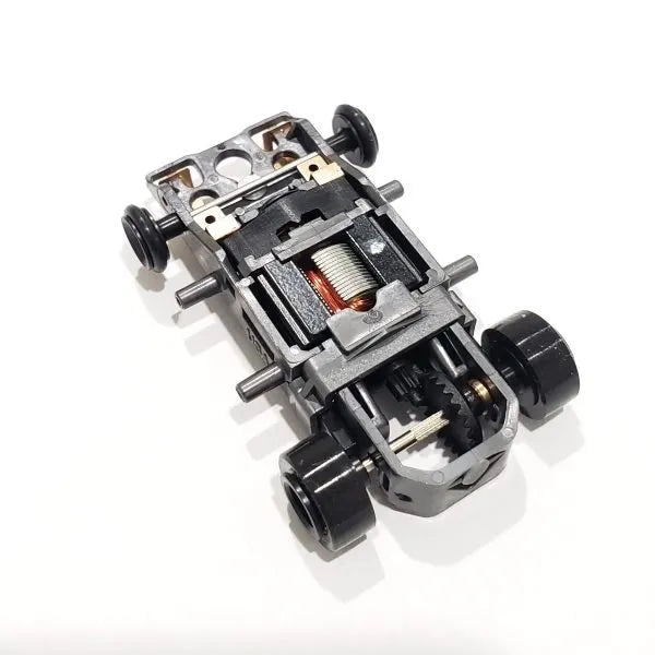 El coche de carreras modificado V1 es un coche de carreras fiable, rápido y completamente actualizable, construido con piezas de alto rendimiento. El chasis V1 cuenta con soportes de carrocería moldeados para su uso con carrocerías de lexan liviano o, si no estás interesado en usar carrocerías de lexan, los tubos moldeados se pueden quitar y la mayoría de las carrocerías Tomy SG+ se pueden usar con un clip de carrocería. Las carrocerías Tomy F1 también se ajustarán al chasis V1 una vez que se hayan retirado los postes. (Por favor, especifique si desea que se retire el poste.) Estos coches son extremadamente rápidos y requieren fuentes de alimentación mejoradas.