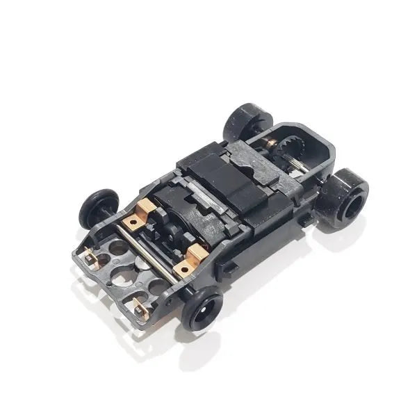 El coche de carreras VSPEC™ es un coche slot de escala HO confiable, rápido y totalmente mejorable, construido con piezas de alto rendimiento. Muchas características del VSPEC™ RTR se encuentran en nuestros coches de carrera de alto rendimiento a una fracción del precio. Si buscas un coche que funcione bien en tu pista en casa o un coche que pueda ser competitivo en tu club local, este es el coche para ti. El chasis V1 cuenta con soportes de carrocería moldeados para su uso con carrocerías de lexan liviano o, si no estás interesado en usar carrocerías de lexan, los tubos moldeados se pueden quitar y la mayoría de las carrocerías Tomy SG+ se pueden usar con un clip de carrocería. Los cuerpos de Tomy F1 también se ajustarán al chasis V1 una vez que se hayan retirado los postes. Mucha diversión y la mejor relación calidad-precio.